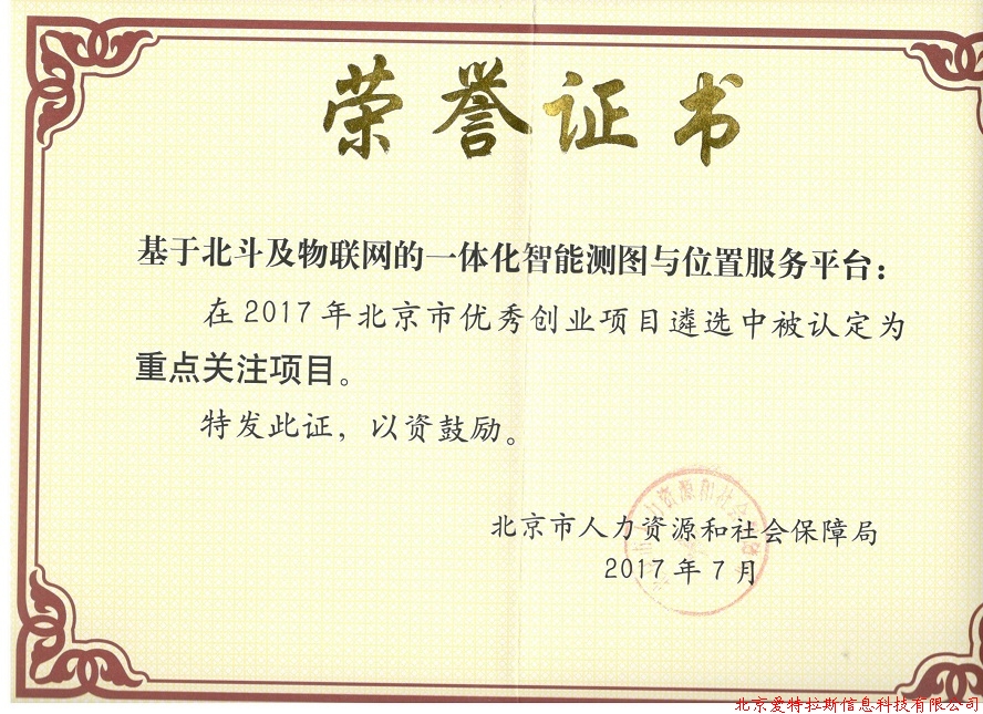 此次優(yōu)秀創(chuàng )業(yè)項目獎的獲得,不僅是專(zhuān)家組對基于北斗及物聯(lián)網(wǎng)的一體化智能測圖與位置服務(wù)平臺的認可,同時(shí)也是給予北京愛(ài)特拉斯信息科技有限公司的高度贊賞。我公司有此殊榮,必將不懈努力,力爭再創(chuàng )佳績(jì)。
