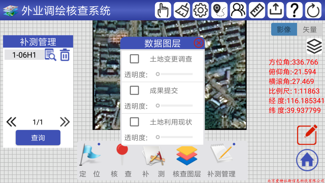 公司三調外業(yè)軟件基于A(yíng)ndroid平臺研發(fā),通過(guò)GPS定位,為調查人員提供便利的現場(chǎng)作業(yè)工具。系統提供核查、補測功能,支持手繪、拍照舉證、隨記,實(shí)現第三次土地調查土地利用分類(lèi)的快速標繪,大幅提高細化調查、核查效率。系統還支持輔助數據載入,幫助外業(yè)人員更好的核查舉證。