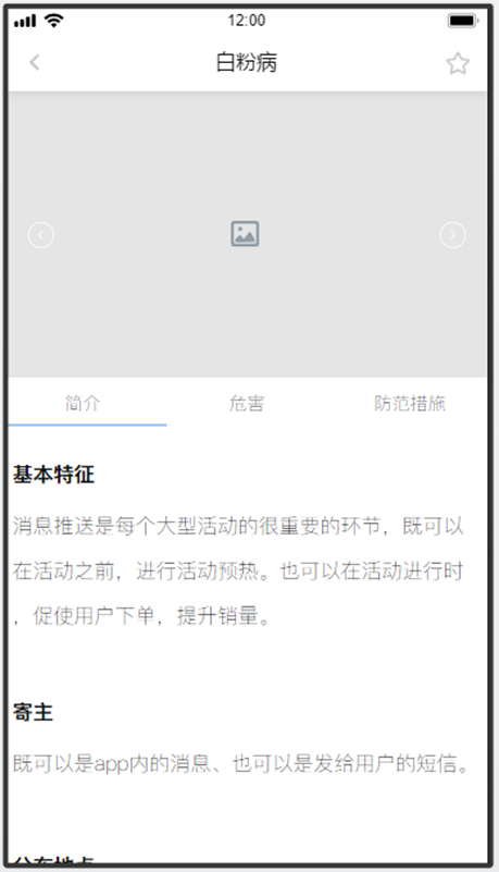 • 作物病害知識服務(wù):病害簡(jiǎn)介、危害、防治措施