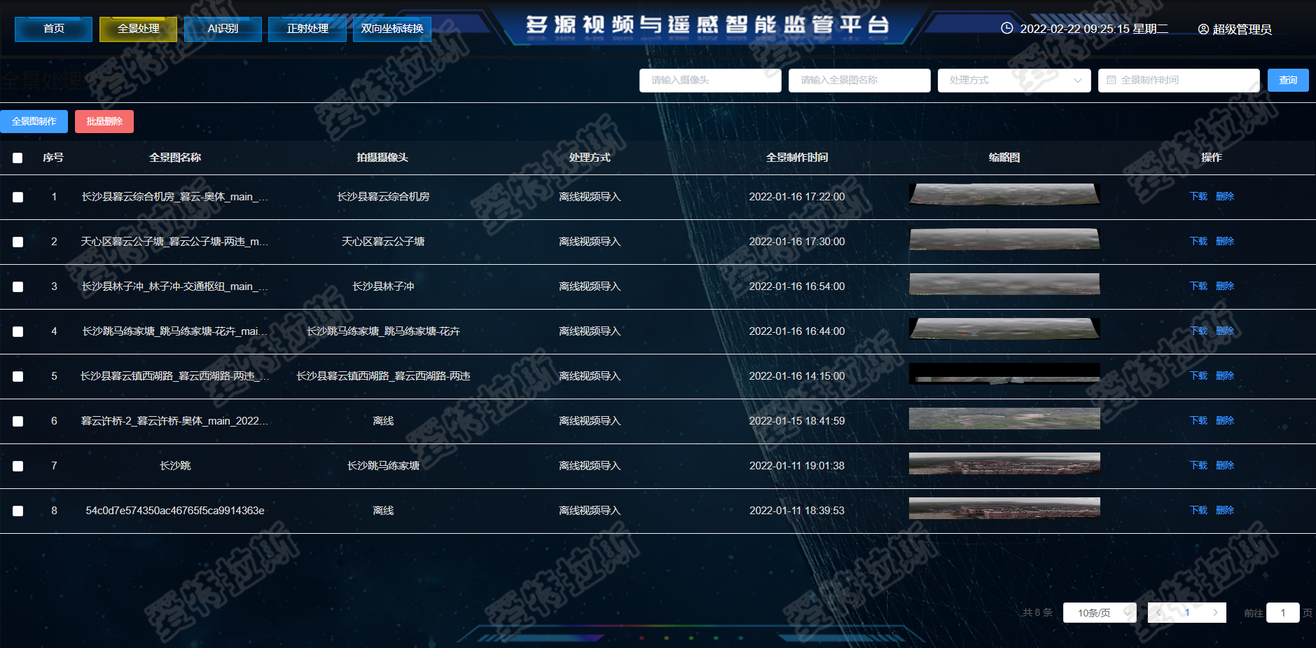 產(chǎn)品的核心功能聚焦主要在:正射影像、全景處理、違法圖斑輔助核查、視頻AI場(chǎng)景識別、坐標雙向轉化五個(gè)方面。