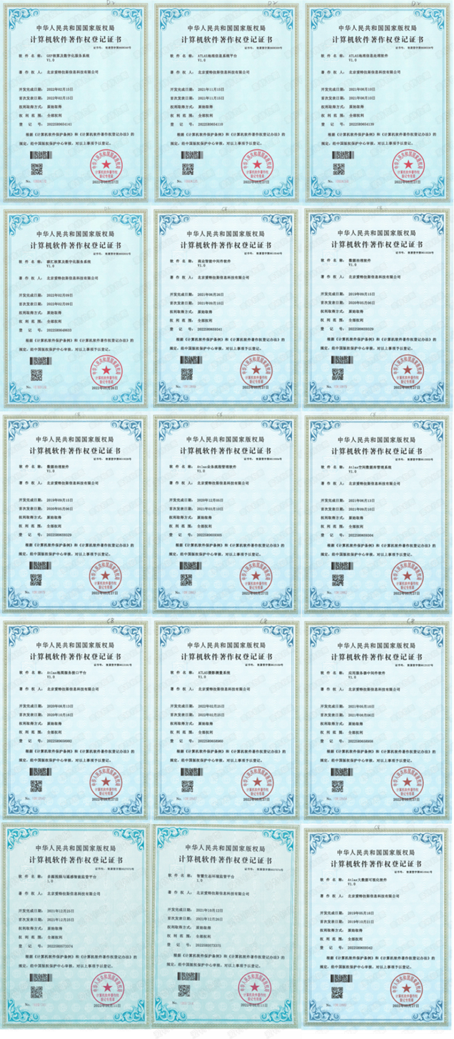 基于近年來(lái)公司國產(chǎn)自主創(chuàng )新得空間大數據平臺相關(guān)核心產(chǎn)品和技術(shù),我司于2022年上半年向國家版權局提交的15項計算機軟件著(zhù)作權申請,如今證書(shū)已正式取得,包括《ATLAS地理信息系統平臺V1.0》、《ATLAS攝影測量系統V1.0》、《ATLAS地理信息處理軟件V1.0》、《多源視頻與遙感智能監管平臺1.0》、《GEP核算及數字化服務(wù)系統V1.0》、《碳匯核算及數字化服務(wù)系統V1.0》、《商業(yè)智能中間件軟件V1.0》、《數據治理軟件V1.0》、《Atlas業(yè)務(wù)流程管理軟件V1.0》、《Atlas空間數據庫管理系統V1.0》、《Atlas地圖服務(wù)接口平臺V1.0》、《應用服務(wù)器中間件軟件V1.0》、《智慧生態(tài)環(huán)境監測平臺1.0》、《智慧生態(tài)環(huán)境監管平臺1.0》、《Atlas大數據可視化軟件V1.0》15項計算機軟件版權。截止目前,我司已取得包括時(shí)空大數據產(chǎn)品、衛星遙感智能系統產(chǎn)品、空間大數據平臺產(chǎn)品在內的著(zhù)作權及相關(guān)專(zhuān)利65項。