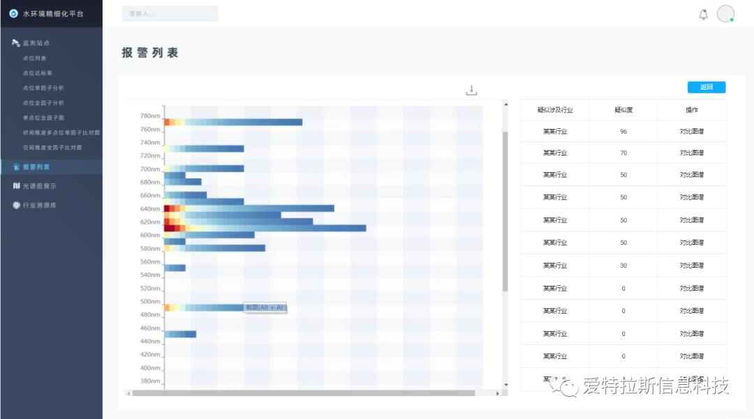 結合前期調研巡查的污染源排放清單,結合光譜溯源分析技術(shù),形成污染源特征指紋光譜及行業(yè)特征指紋光譜,綁定污染源與指紋圖譜關(guān)系。