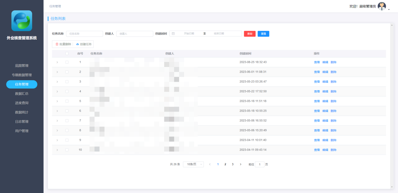 主要流程:任務(wù)管理下發(fā)-外業(yè)核查填報-成果實(shí)時(shí)上傳導出。